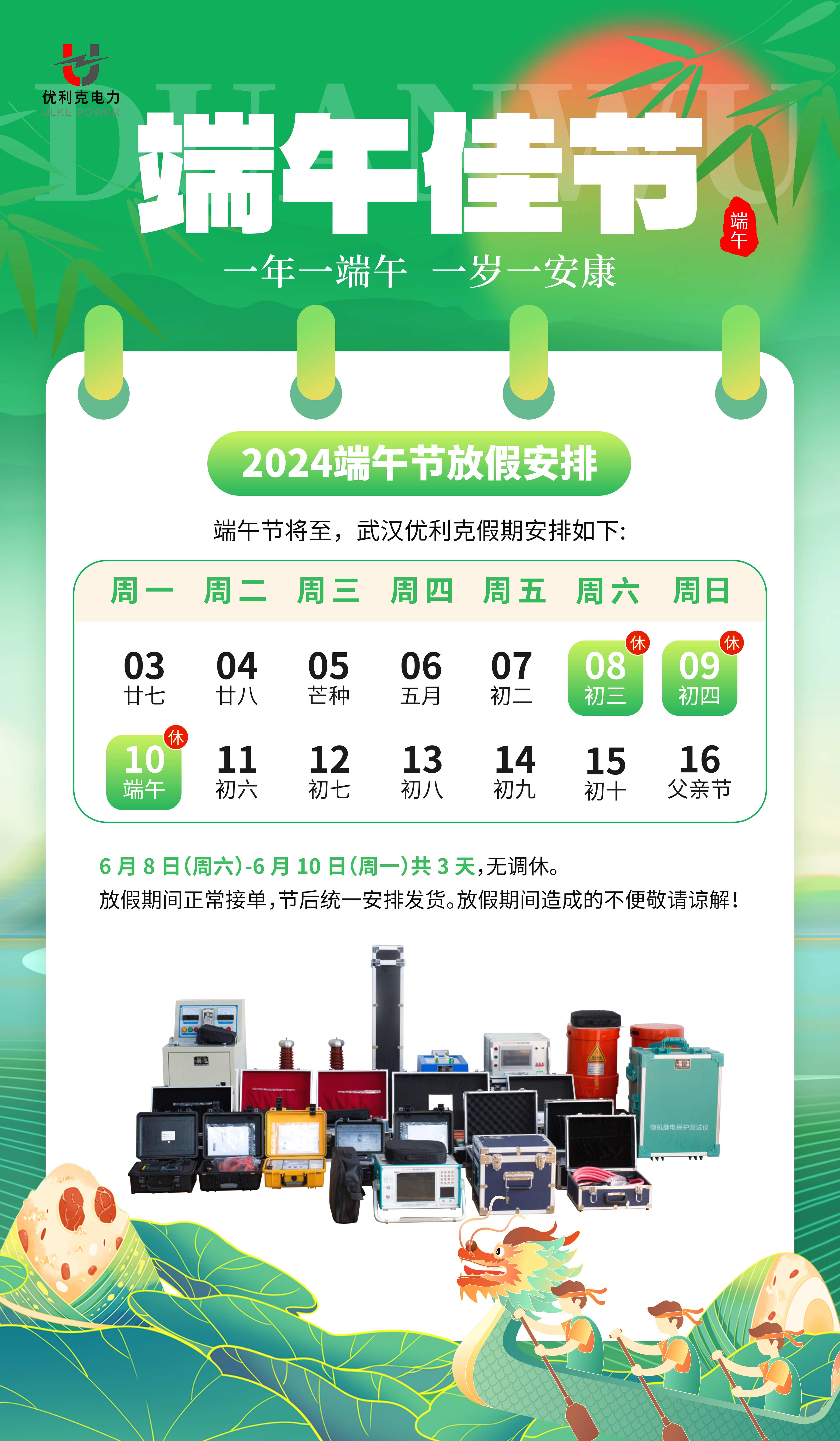 端午節來臨之際祝各位端午安康、身體健康!根據國家法定假期規定,結合我公司實際情況,現將2024年端午節放假事項通知如下: