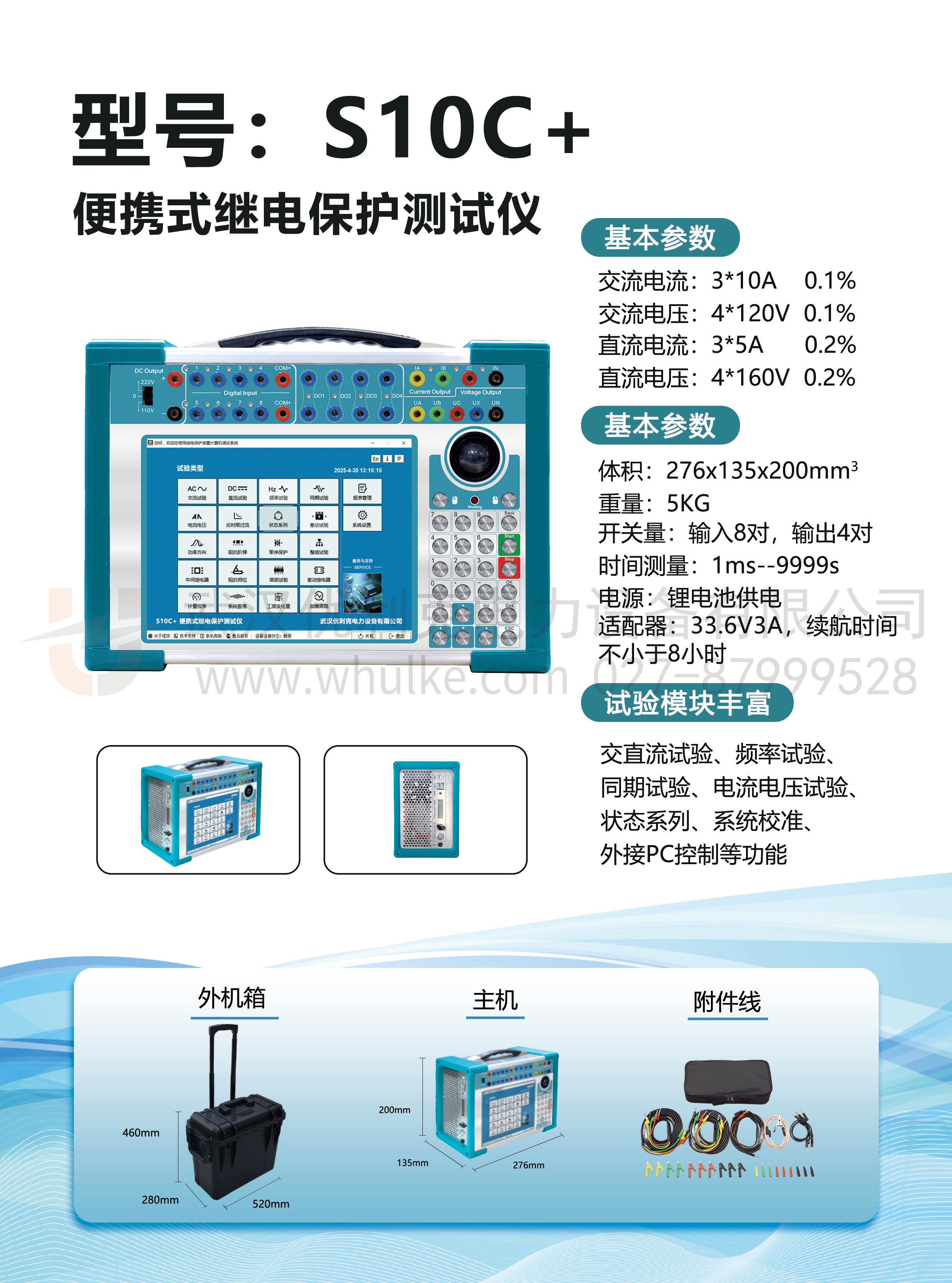 • ULKE - S60:專為小型電力設備繼電保護測試設計,體積小巧輕便,便于攜帶與現場操作。具備基礎的保護功能測試與參數測量