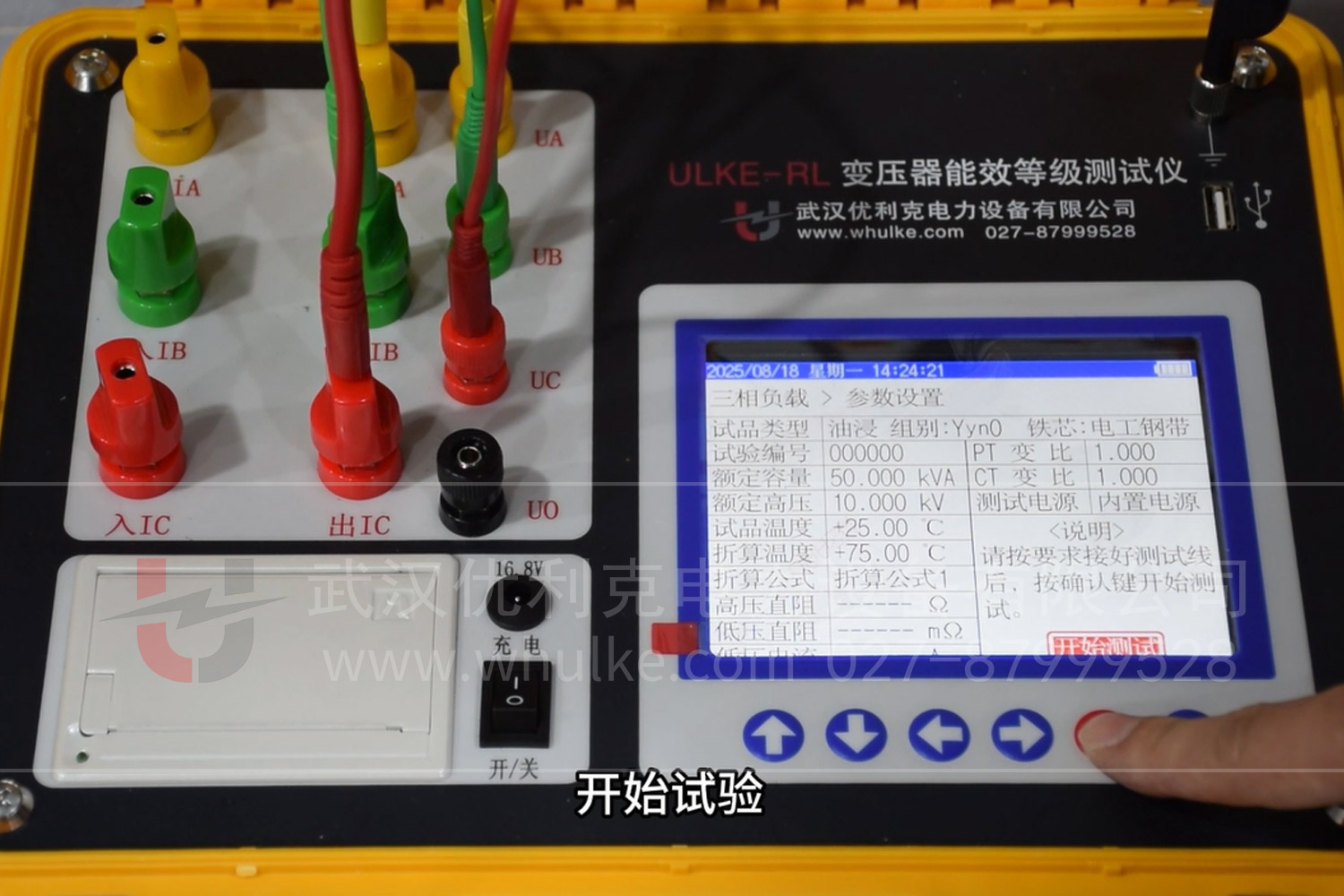 接線操作:將測試儀的電壓端子接入變壓器原邊、副邊的電壓接線柱,電流端子串聯接入原邊、副邊電流回路,確保接線牢固(避免